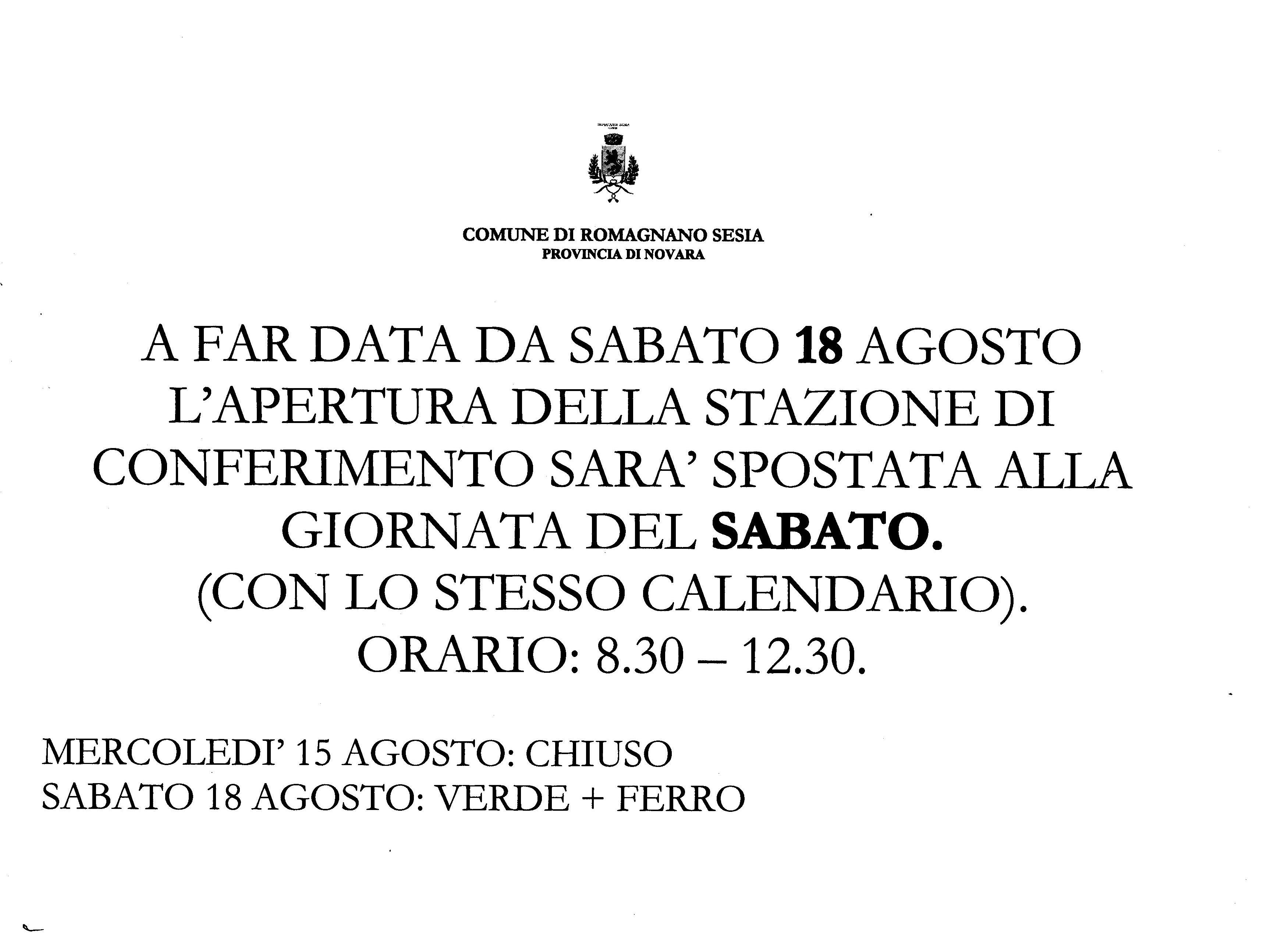APERTURA STAZIONE DI CONFERIMENTO