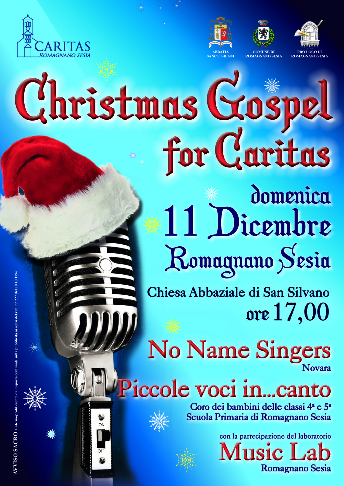 Domenica 11 dicembre alle 17 in chiesa Abbaziale San Silvano. Canteranno: i "No Name Singers" di Novara e "le Piccole voci in...canto" (coro dei bambini delle classi quarta e quinta della Scuola Primaria di Romagnano Sesia). Parteciperà anche il gruppo del laboratorio Music Lab.
