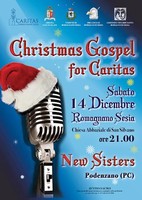 Solidarietà, atmosfere natalizie e musica Gospel: ingredienti per un cocktail di sicuro successo! E se tutto ciò non bastasse...una chicca : il concerto sarà esclusivamente al "femminile" , con l'esibizione del "New Sisters Gospel Choir" di Podenzano (Pc). Tra il I e il II tempo del concerto, sarà benedetto il labaro della Caritas, realizzato grazie al contributo "operativo" di tanti romagnanesi!