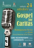 Sabato 24 ottobre, in chiesa parrocchiale a Romagnano Sesia, si terrà “Gospel for Caritas” organizzato dalla Caritas di Romagnano Sesia. Quest’anno canteranno due gruppi: il Coro Incontrotempo di Milano e Corosedeuto di Novate Milanese.