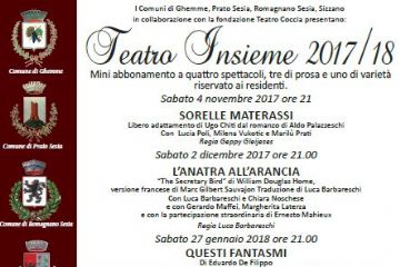 Il mini abbonamento a quattro spettacoli, due di prosa e due di varietà, è riservato ai residenti di Romagnano, Prato, Ghemme e Sizzano. L’abbonamento prevede i seguenti spettacoli: