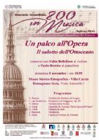In occasione della rassegna musicale nei luoghi Antonelliani del novarese “800 in musica” in Villa Caccia si terrà un concerto con Fabio Bellofiore al violino e Paolo Beretta al pianoforte. “Un palco all’Opera. Il salotto dell’Ottocento” si terrà domenica 8 novembre alle ore 18. Il programma prevede brani di G. Rossini, L. Van Beethoven, V. Bellini, G. Verdi, J. Massenet, E. Sessa.